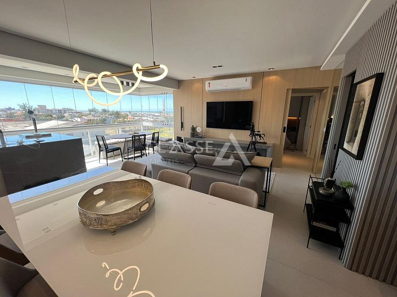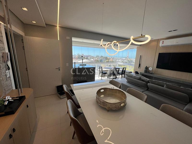 Excelente apartamento à venda em Arroio do Sal. Possui duas suítes, lavabo, living de três ambientes, mobiliado e decorado, além de duas vagas de garagem. Com uma área privativa de 112 m².