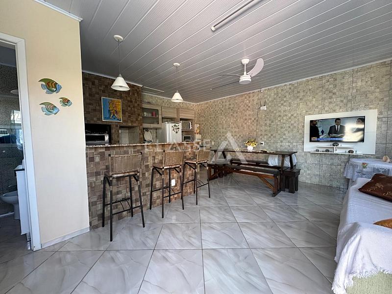 Casa à venda no balneário Âncora em Arroio do Sal. Possui três dormitórios, sendo uma suíte, dois banheiros sociais, piscina, quiosque, garagem para três carros e está sendo vendida mobiliada. O terreno mede 10x30 (300m²) e a casa possui 142m² de área construída. Localizada a 450 metros do mar.