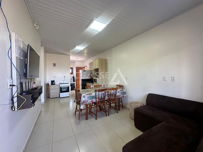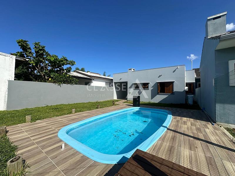 Casa à venda no balneário Âncora em Arroio do Sal. Possui três dormitórios, sendo uma suíte, imóvel mobiliado, com piscina, construção de 80m² e terreno medindo 10x30 (300m²). Frente sul, localizada a sete quadras do mar.