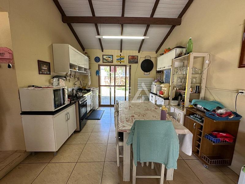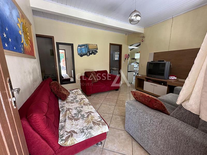 Casa à venda no bairro Areias Brancas em Arroio do Sal. Possui três dormitórios, dois banheiros, sala, cozinha, churrasqueira, abrigo para um carro, mobiliada, terreno 14x29 e 125m² de área construída. A 9 quadras do mar.