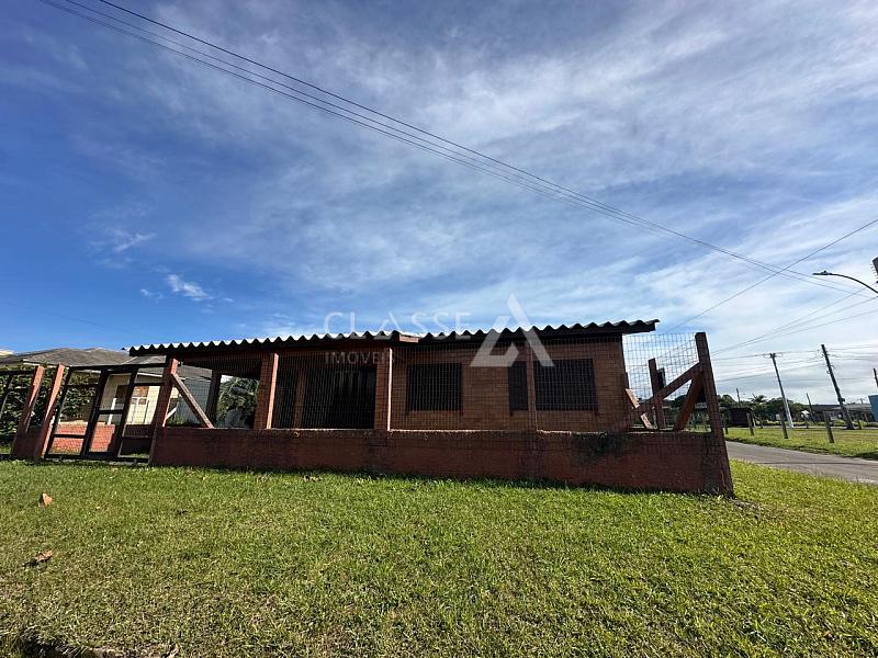 Casa à venda no balneário Areias Brancas em Arroio do Sal, localizada a apenas 100 metros do mar. Possui três dormitórios, um banheiro e posição solar frente leste/norte, situada em esquina.