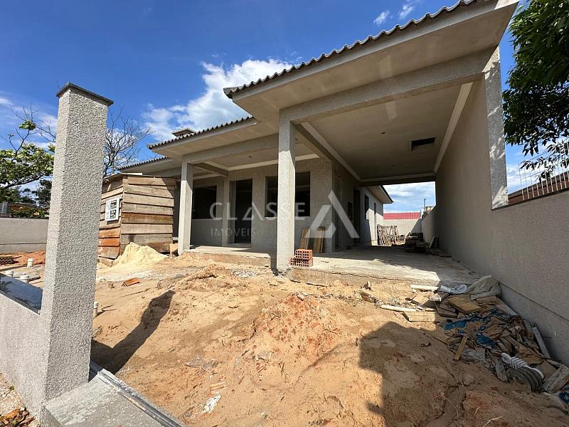 Casa à venda no bairro Areias Brancas em Arroio do Sal. Possui três dormitórios, sendo uma suíte, banheiro social, sala de estar e jantar, cozinha, lavanderia, lareira, churrasqueira e 127,3 m² de área construída.