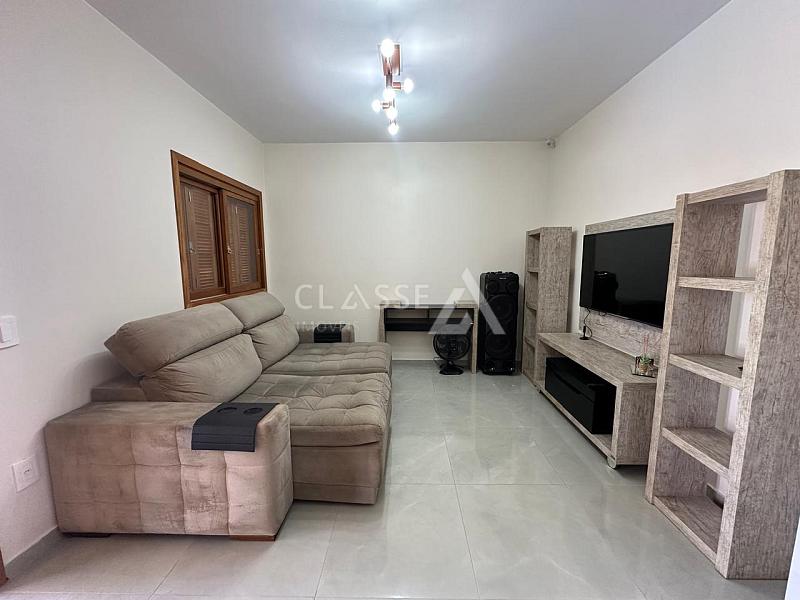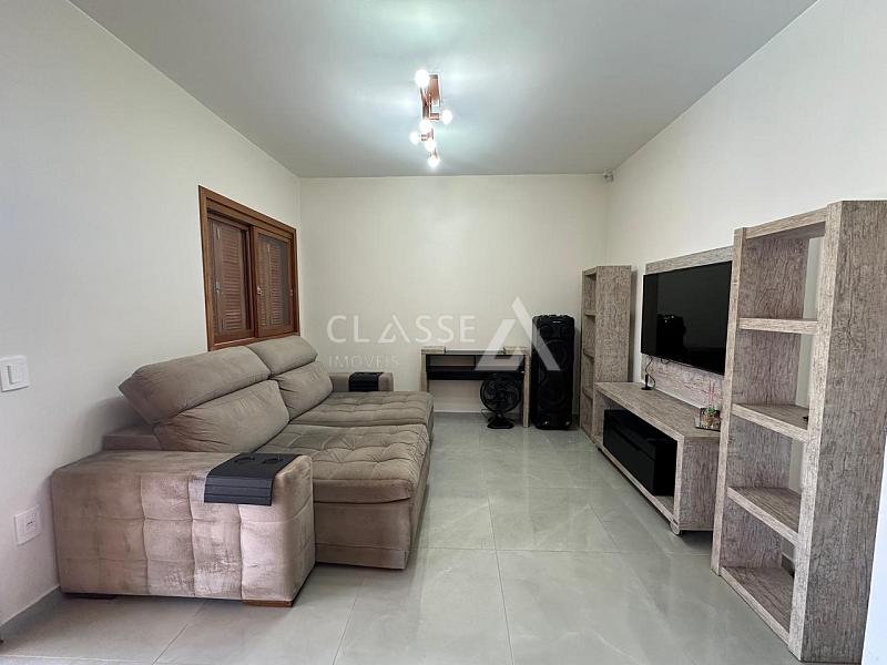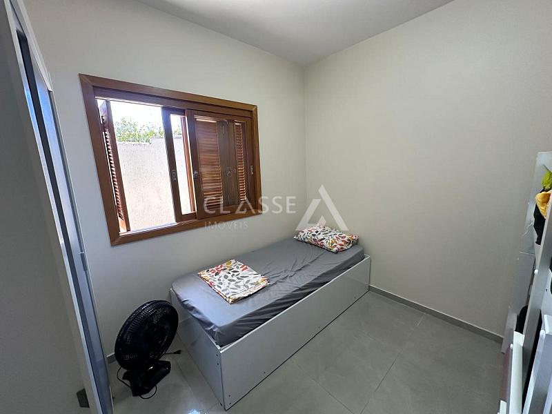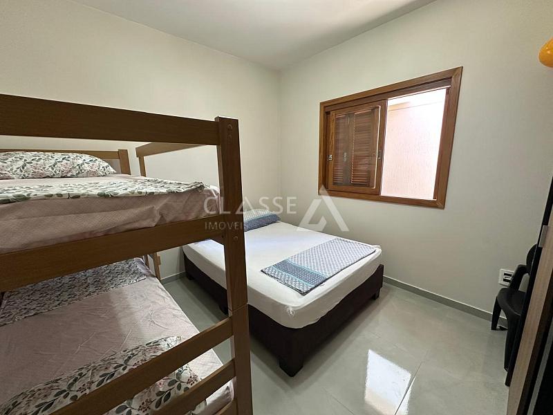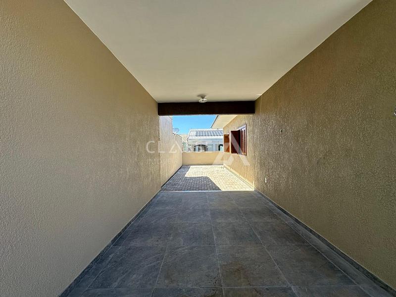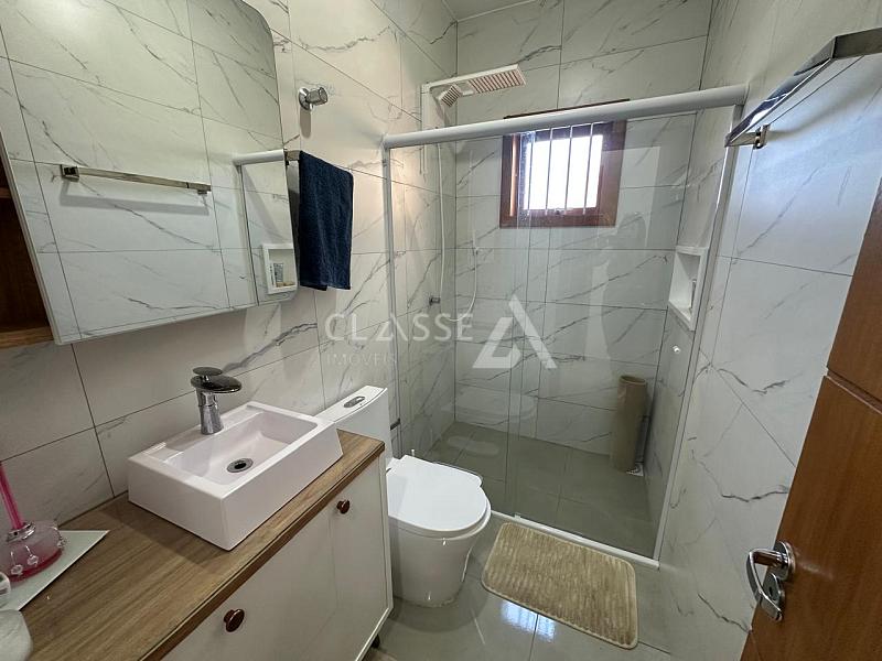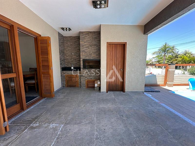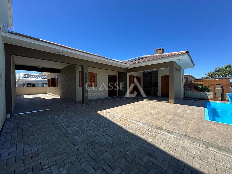 Casa à venda em Arroio do Sal. Possui três dormitórios, sendo uma suíte, banheiro social, lavabo, living de três ambientes, cozinha, área de serviço, piscina, área coberta, terreno 12x25 e 105m² de área construída, com posição solar frente oeste. Localizada a cinco quadras do mar.