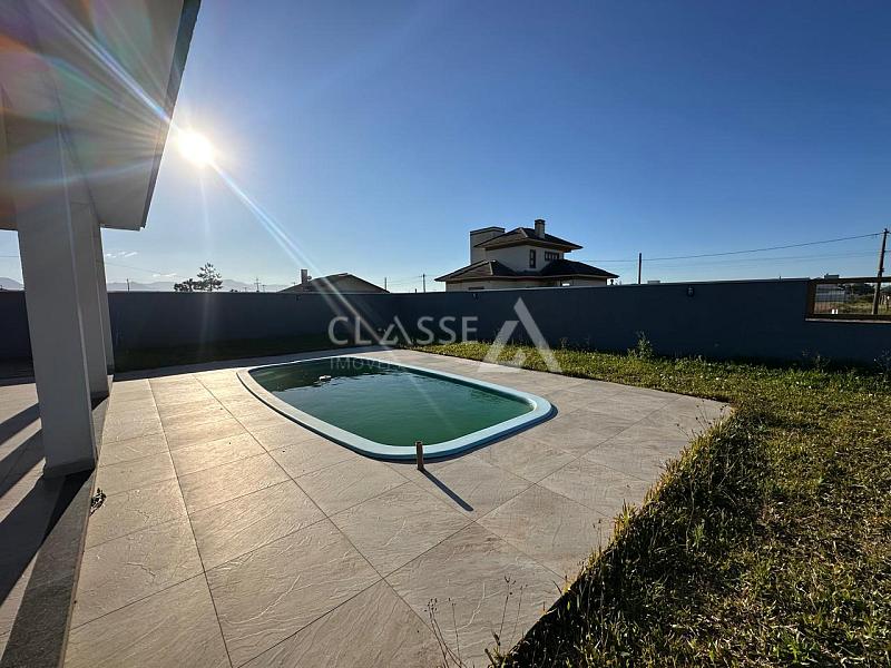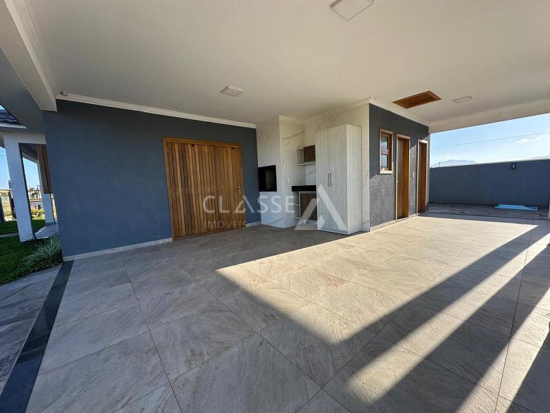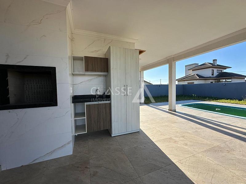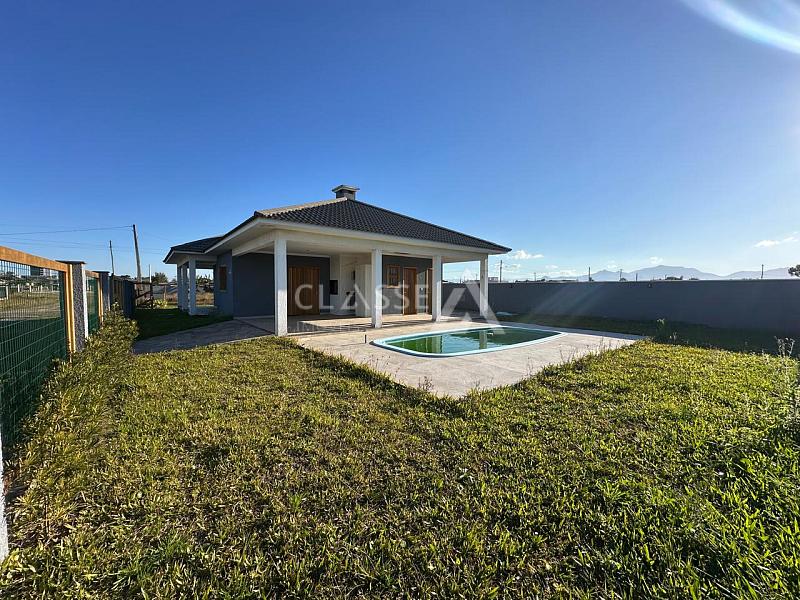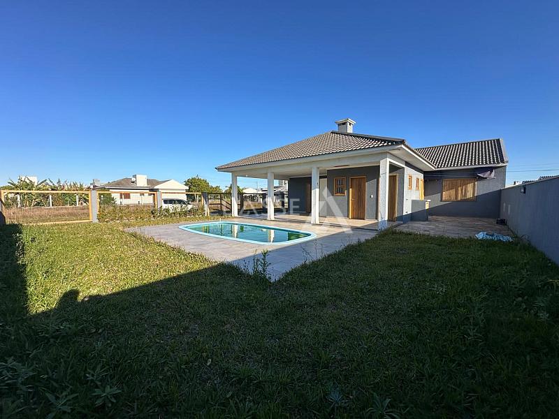 Casa de esquina à venda no balneário Camboim em Arroio do Sal. Possui três dormitórios, sendo uma suíte, living com três ambientes, banheiro social, churrasqueira e piscina. Área construída de 179,5m² em terreno de 480m² (16x30).