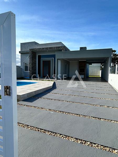 Casa à venda no balneário Camboim em Arroio do Sal. Possui três dormitórios, sendo uma suíte, lavanderia, lareira e churrasqueira. Área construída de 138m² em terreno de 12x30, totalizando 360m².