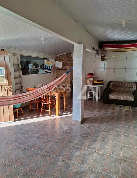 Casa à venda no Centro de Arroio do Sal. Possui três dormitórios, um banheiro, garagem, churrasqueira, lavanderia, semi mobiliada, frente leste, a 8 quadras do mar, terreno de 12,5x30 e 120m² de área construída.