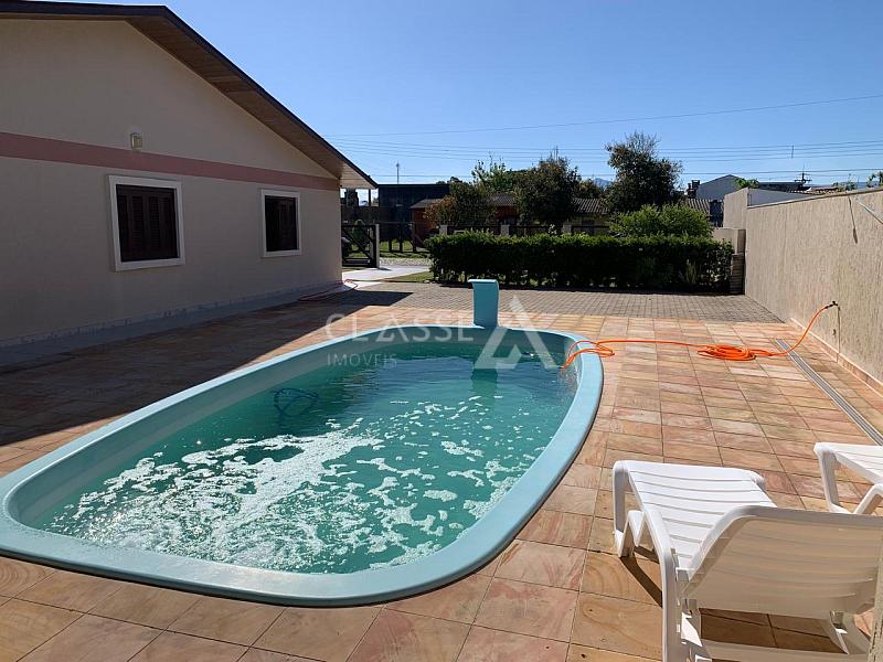 Casa mobiliada à venda no Centro de Arroio do Sal, a 400 metros do mar. Imóvel com 160m² de área construída, em dois terrenos de 12x25 cada, totalizando 600m². Conta com três dormitórios, sendo uma suíte, dois banheiros sociais, piscina e quiosque. Frente oeste. Apta a financiamento bancário.