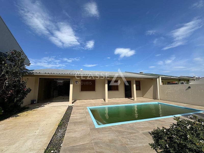 Casa à venda no Centro de Arroio do Sal. Possui três dormitórios, sendo uma suíte, um banheiro social, piscina e imóvel mobiliado. Conta com 160m² de área construída em terreno de 12x25, totalizando 300m², frente oeste e localizada a apenas 200 metros do mar.