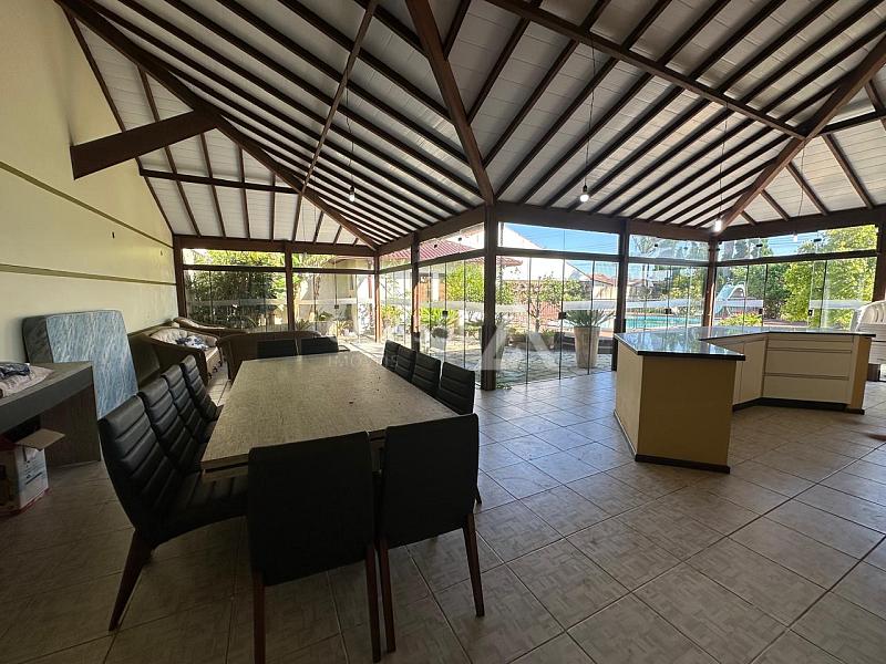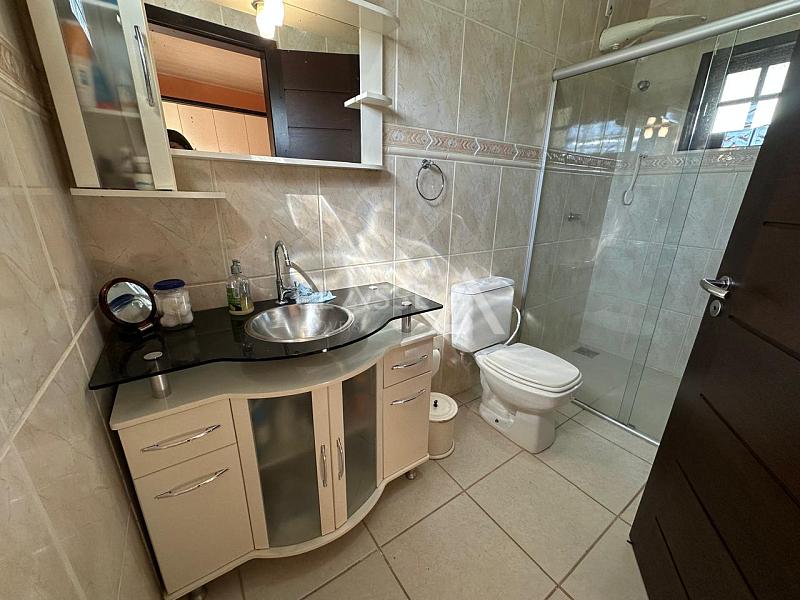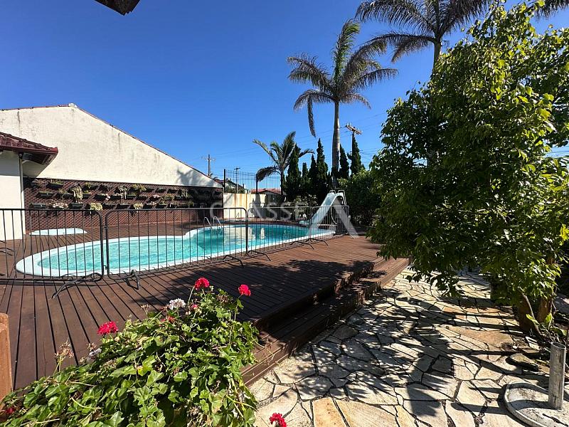 Casa à venda no Centro de Arroio do Sal. Possui três dormitórios, sendo um suíte, dois banheiros sociais, sala, cozinha, churrasqueira, lareira, quiosque e piscina. Totalmente mobiliada, com área construída de 300m² e dois terrenos de 12x25 cada, somando 600m². Localizada a apenas 250 metros do mar, com frente Sul-Oeste.