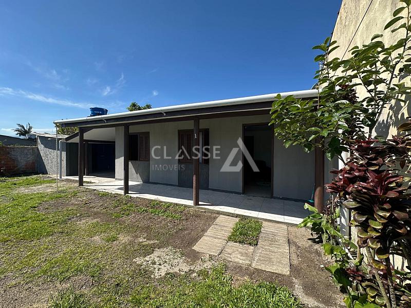 Casa à venda no Centro de Arroio do Sal. Possui três dormitórios, dois banheiros, sala, cozinha, área de serviço e área coberta. Terreno de 300m² (12x25) e construção de 80m². Localizada a apenas quatro quadras do mar, com posição solar sul. Aceita carro, parcelamento e imóvel de menor valor.