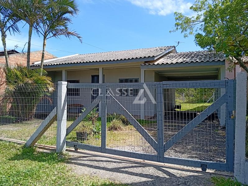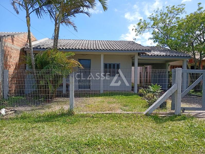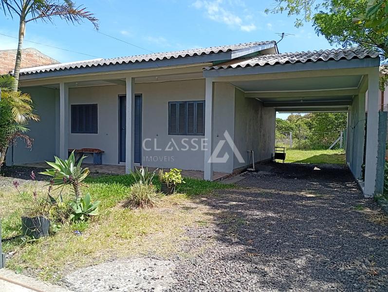 Casa à venda no balneário Figueirinha em Arroio do Sal, a 600 metros do mar. Possui dois dormitórios, sala e cozinha integradas, banheiro social, pátio cercado, posição solar lado norte, e terreno com metragem de 12x25.