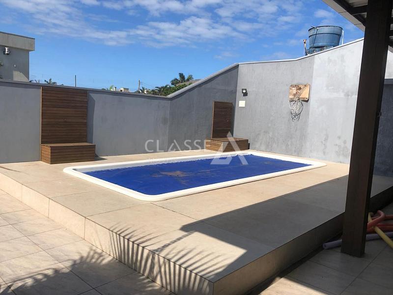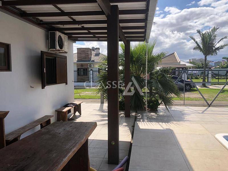 Casa em Arroio do Sal no bairro Figueirinha. Possui quatro dormitórios, sendo uma suíte, um banheiro social, sala, cozinha, fogão a lenha, split, piscina, churrasqueira e está mobiliada. Imóvel de esquina com posição solar oeste/sul.