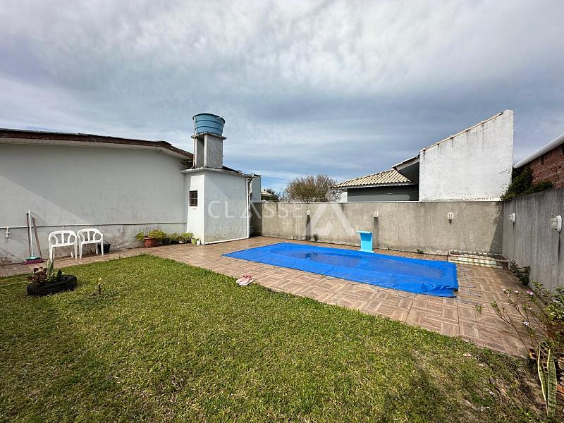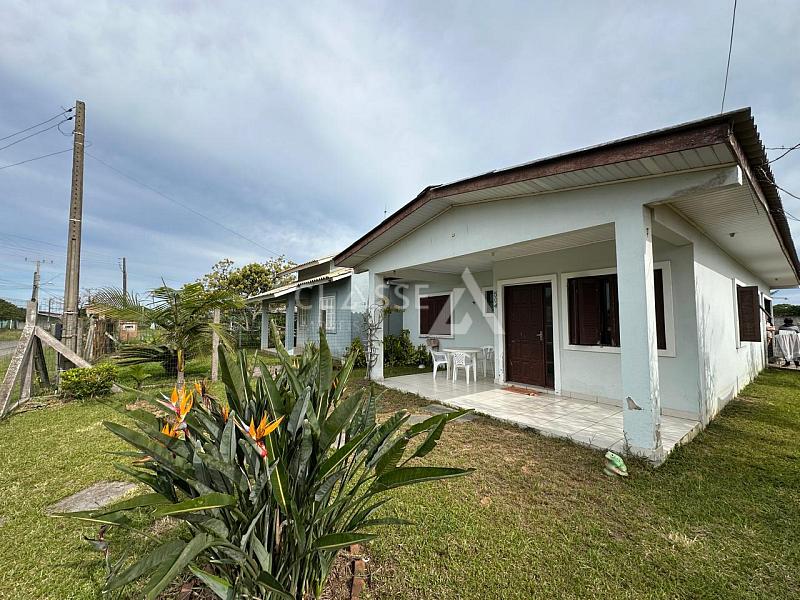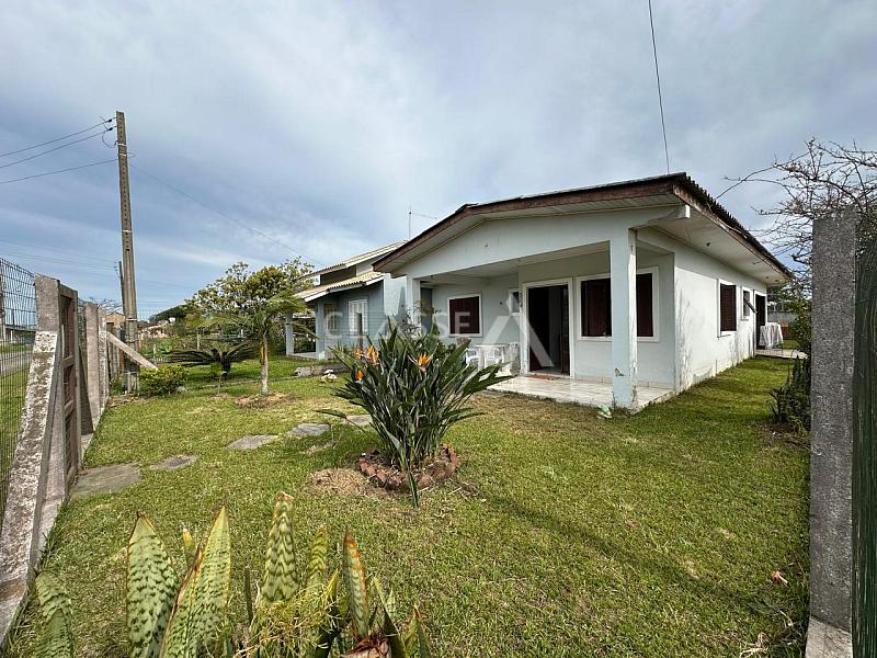 Casa à venda no bairro Jardim Olívia em Arroio do Sal. Possui dois dormitórios, um banheiro, sala, cozinha, garagem para um carro, piscina, é semi mobiliada e conta com 106m² de área construída. O terreno mede 10x30 (300m²). Imóvel de esquina com posição solar norte/oeste, localizado a 500 metros do mar.