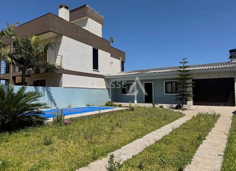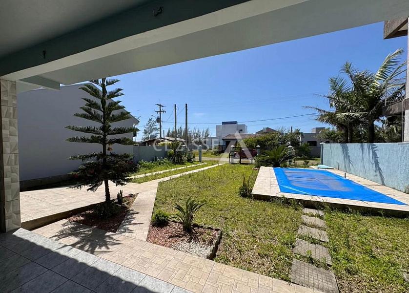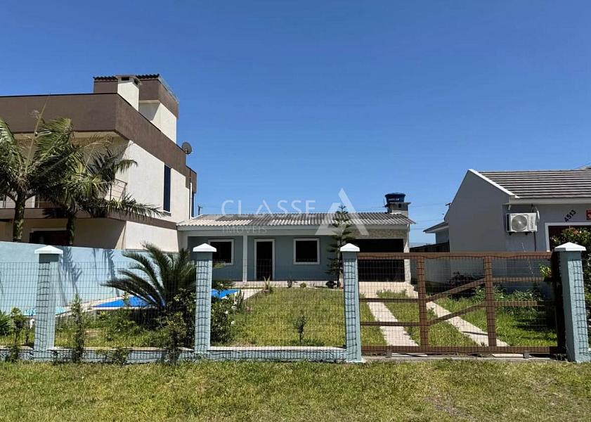 Casa à venda no balneário Jardim Olívia em Arroio do Sal. Possui dois dormitórios, um banheiro, sala/cozinha, churrasqueira, piscina, laje de concreto, terreno 12x25 e construção de 90m². A 300 metros do mar.