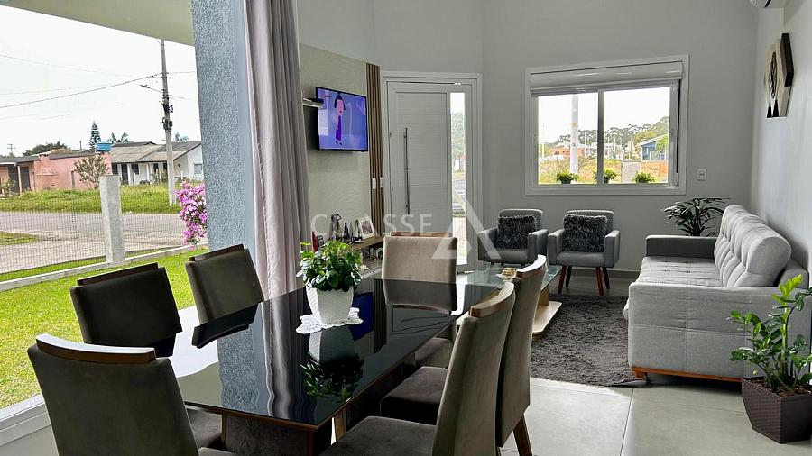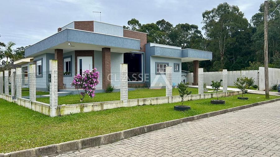 Casa à venda no balneário Jardim Raiante em Arroio do Sal. Possui três dormitórios, sendo uma suíte, churrasqueira, semi mobiliada, terreno de 360m² (12x30) e 128m² de área construída. Localizada a nove quadras do mar, em esquina com frente leste/sul. Aceita imóvel em Nova Petrópolis como parte de pagamento.
