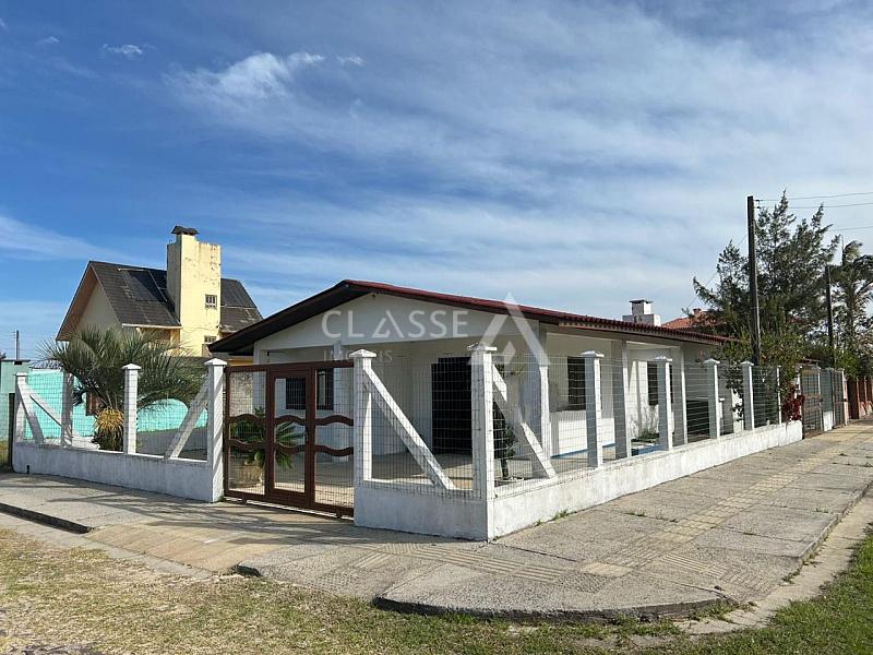 Casa à venda no balneário Pérola em Arroio do Sal. Possui três dormitórios, dois banheiros, sala, cozinha e área privativa de 162m². Imóvel de esquina com frente norte e oeste, localizado a apenas 50 metros do mar.