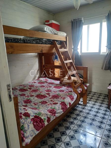 Casa à venda no balneário Pérola em Arroio do Sal. Possui três dormitórios, um banheiro, sala e cozinha integradas. Imóvel mobiliado.