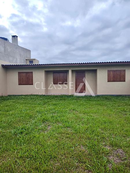 Casa à venda no balneário Quatro Lagos, Arroio do Sal. Possui sala/cozinha, dois dormitórios, um banheiro, terreno amplo de 12x30 com espaçoso pátio e 72m² de área construída.
