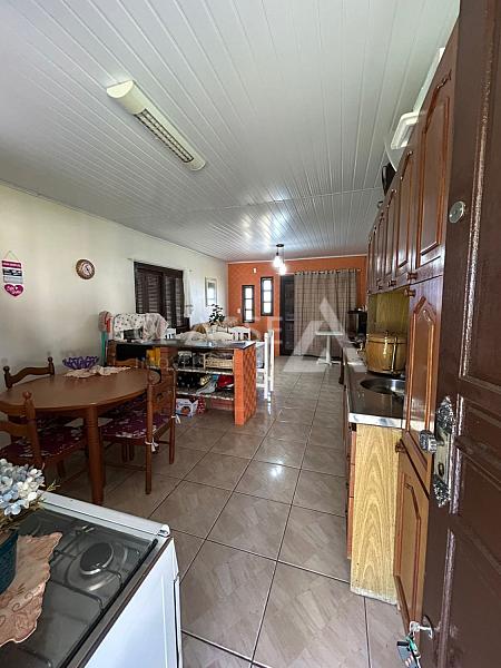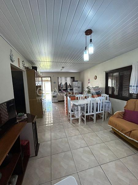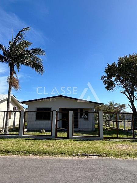 Casa à venda no balneário Quatro Lagos em Arroio do Sal. Imóvel de esquina, com terreno medindo 12x30, dois quartos e um banheiro. A mobília permanece na casa.