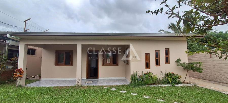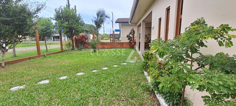 Casa à venda no bairro Quatro Lagos em Arroio do Sal. Possui três dormitórios, sendo uma suíte, dois banheiros, garagem para dois carros, piscina e terreno de 14x30.