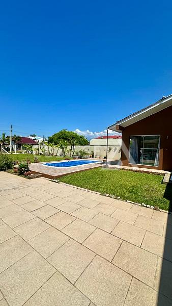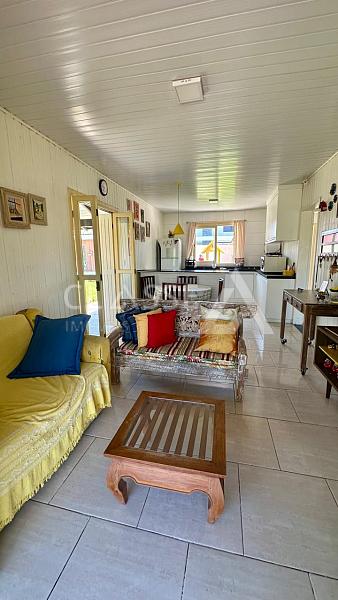 Casa à venda em Rondinha, Arroio do Sal. Possui um dormitório, um banheiro, sala, cozinha, área de serviço, salão de festas, churrasqueira, piscina aquecida, energia solar, garagem, 110m² de área construída e dois terrenos, totalizando 627m² de terreno.