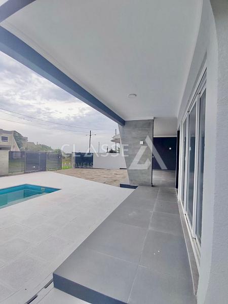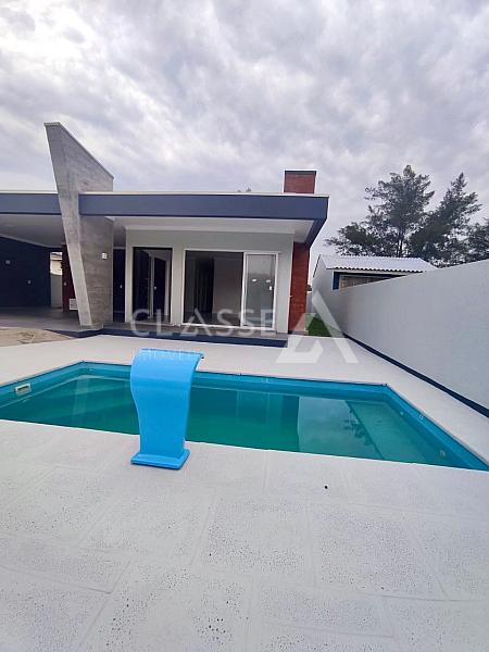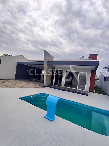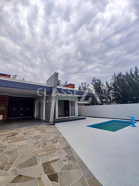 Incrível oportunidade de investir em um imóvel de qualidade na praia de Arroio do Sal! Casa nova e espaçosa com arquitetura moderna e elegante. Possui três dormitórios (sendo uma suíte), dois banheiros, garagem para dois carros, living de três ambientes, piscina e churrasqueira.
