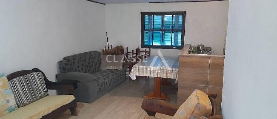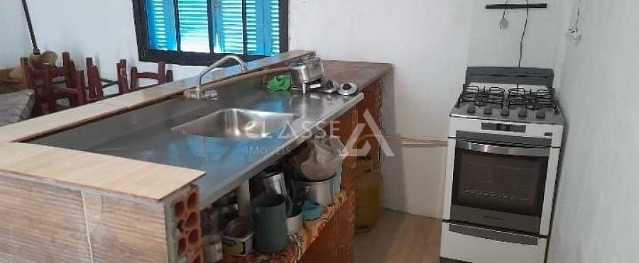 Casa à venda no bairro São Jorge em Arroio do Sal. O imóvel está localizado a aproximadamente 600 metros do mar e conta com três dormitórios, dois banheiros, sala de estar e cozinha integradas.