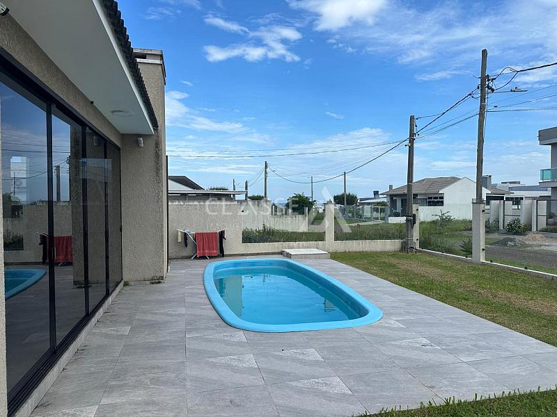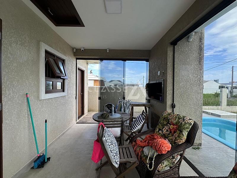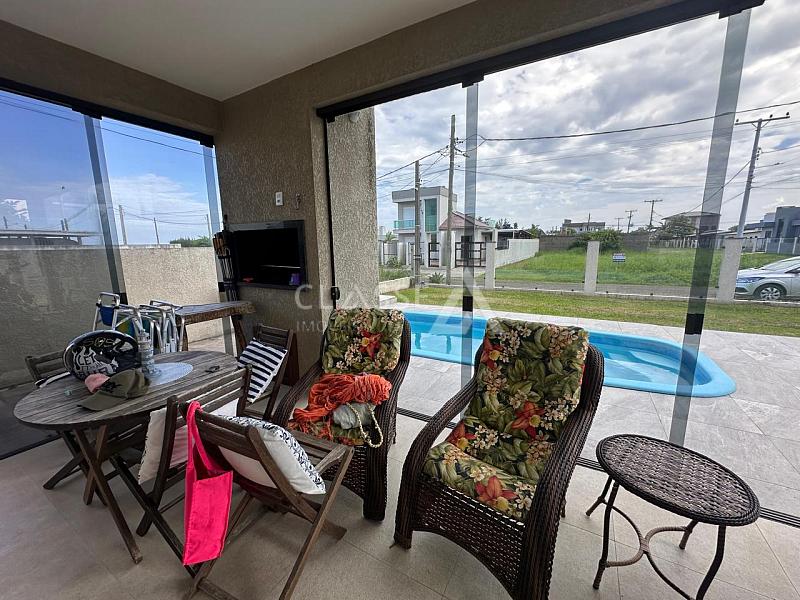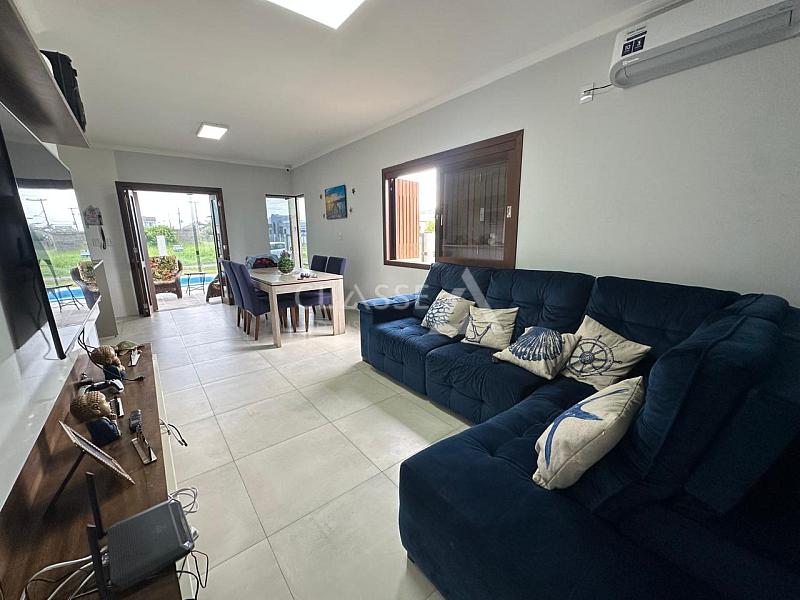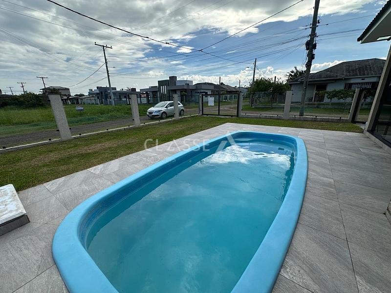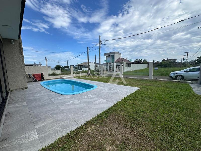Casa à venda no bairro São Jorge em Arroio do Sal, a apenas 100 metros do mar. Possui três dormitórios, sendo uma suíte, um banheiro social, sala, cozinha, churrasqueira, piscina, mobiliada, terreno 12x25 e 105m² de área construída.