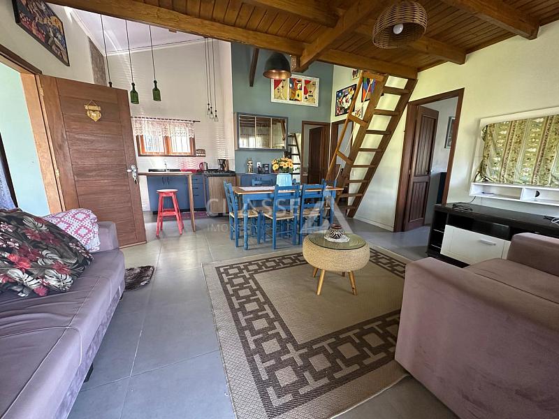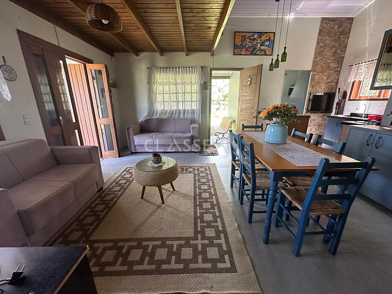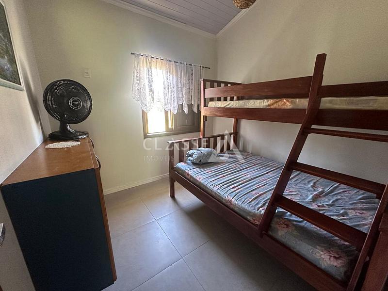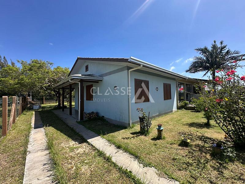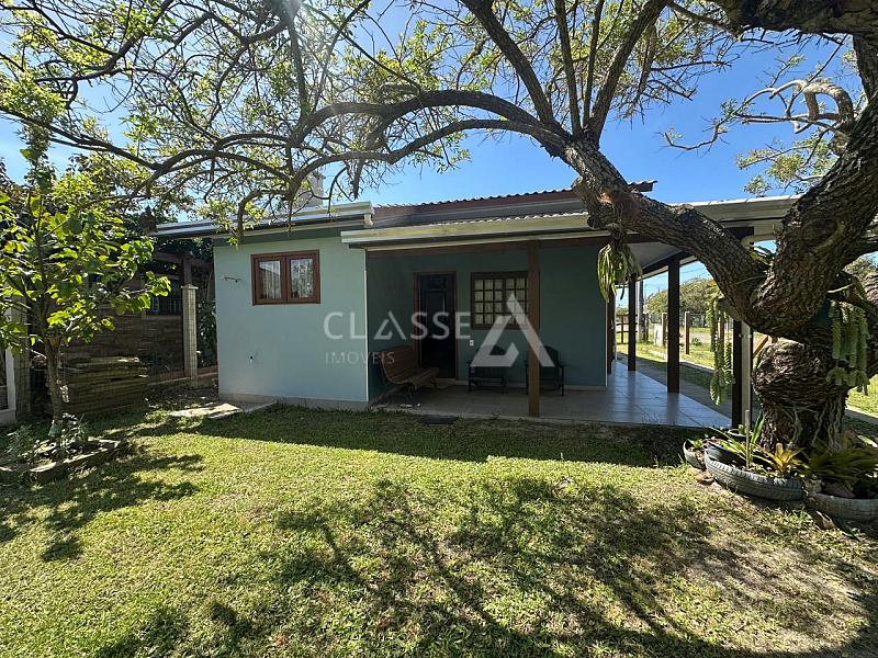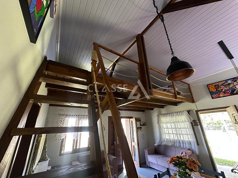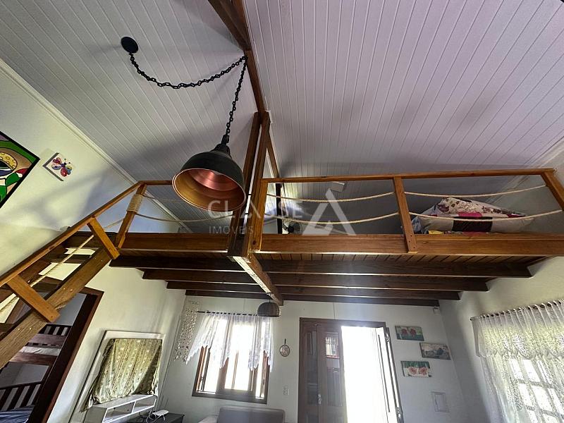 Casa à venda no bairro São Pedro em Arroio do Sal. Possui dois dormitórios, mezanino, um banheiro, sala, cozinha e fica mobiliada. A construção tem 78m² em terreno de 12x25 (300m²). Imóvel de esquina com frente Leste/Sul, localizado a 350 metros do mar.