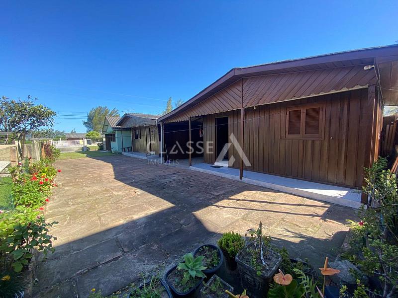 Casa à venda no balneário Sereia do Mar em Arroio do Sal. O imóvel conta com três casas no mesmo pátio, sendo duas casas de madeira iguais, cada uma com dois dormitórios, um banheiro social, sala e cozinha, e uma casa de alvenaria com um dormitório, banheiro social, sala e cozinha. Frente norte e localizada a duzentos metros do mar.