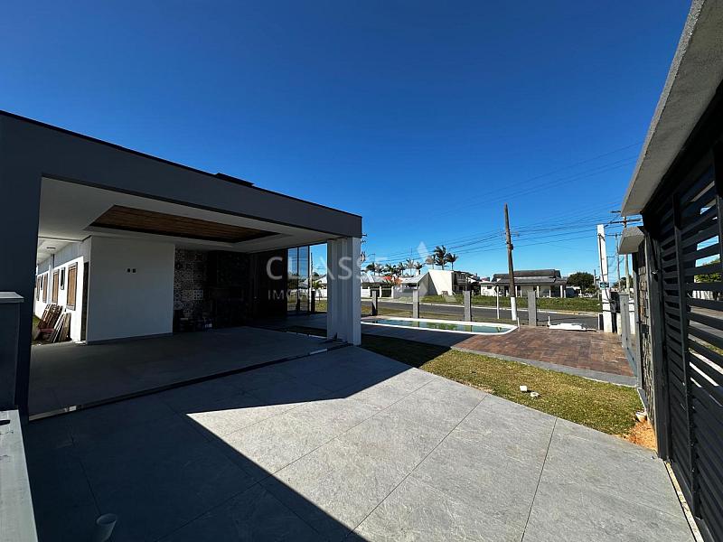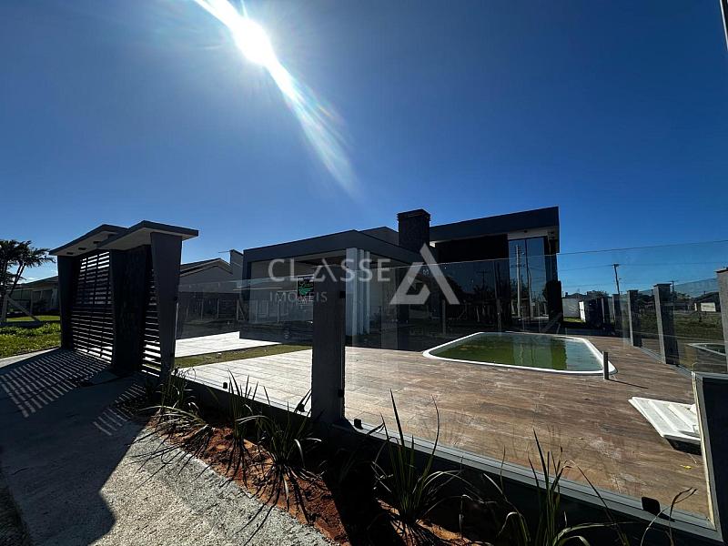 Casa à venda no bairro Vista Alegre em Arroio do Sal, localizada a apenas 250 metros do mar. Possui quatro quartos, sendo dois suítes, dois banheiros sociais, cozinha integrada com a sala, pé direito de 4/5 metros, lareira, porcelanato, área de serviço, piscina e espera para água quente. Área construída de 176m² com posição solar frente sul.