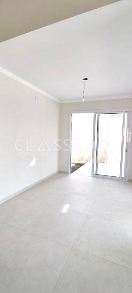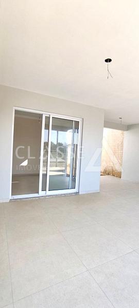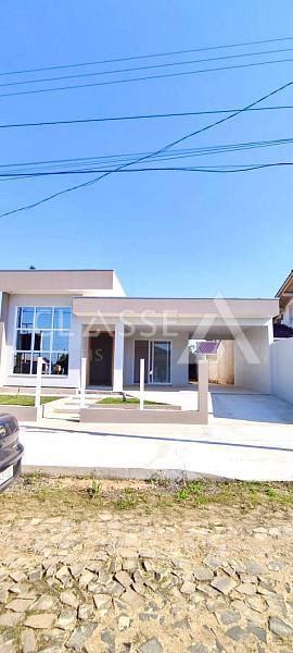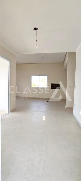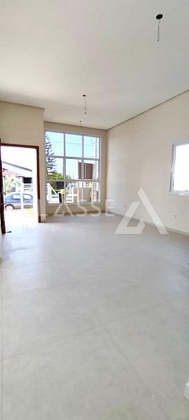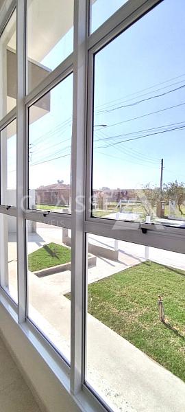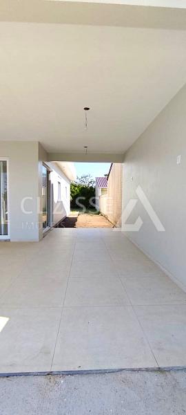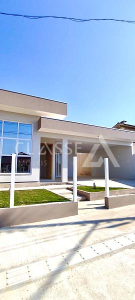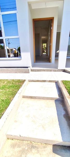 Moderna casa de três dormitórios, sendo duas suítes, banheiro social, espaçoso living de três ambientes,  amplas janelas de vidro ao longo da fachada e churrasqueira. Localizada na praia Paraíso em Torres, com 133 m² de área construída.